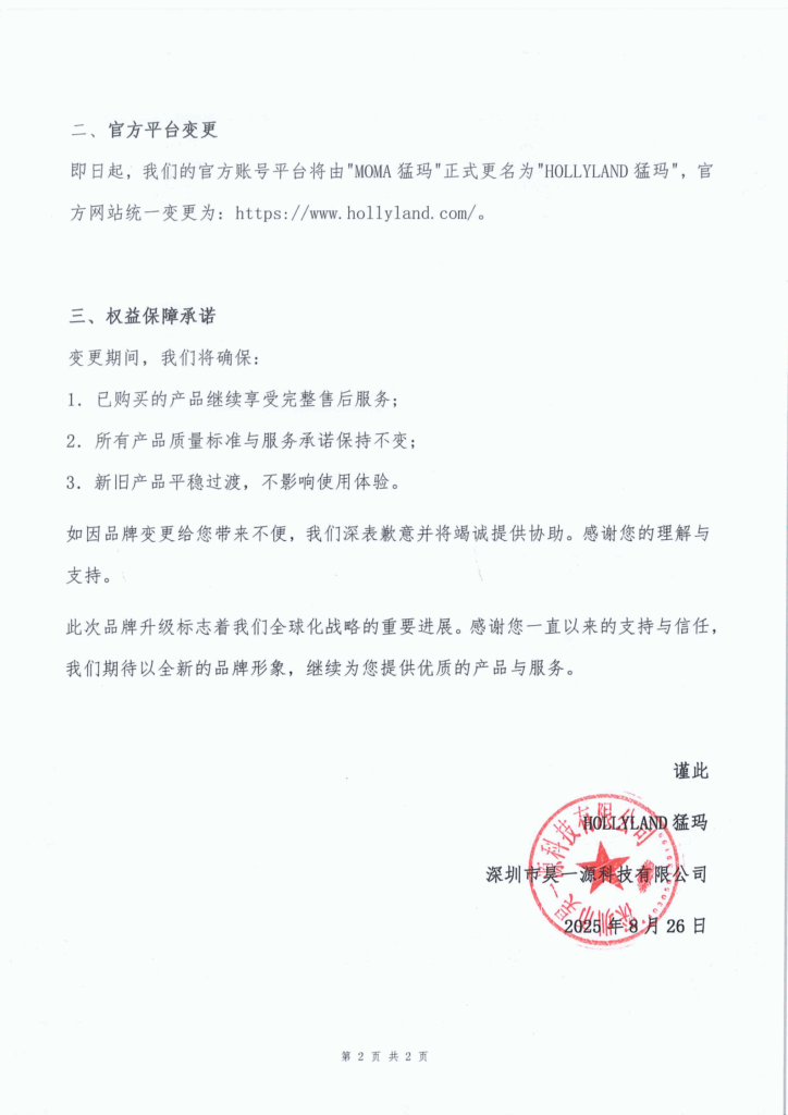 关于HOLLYLAND猛玛全球品牌升级公告