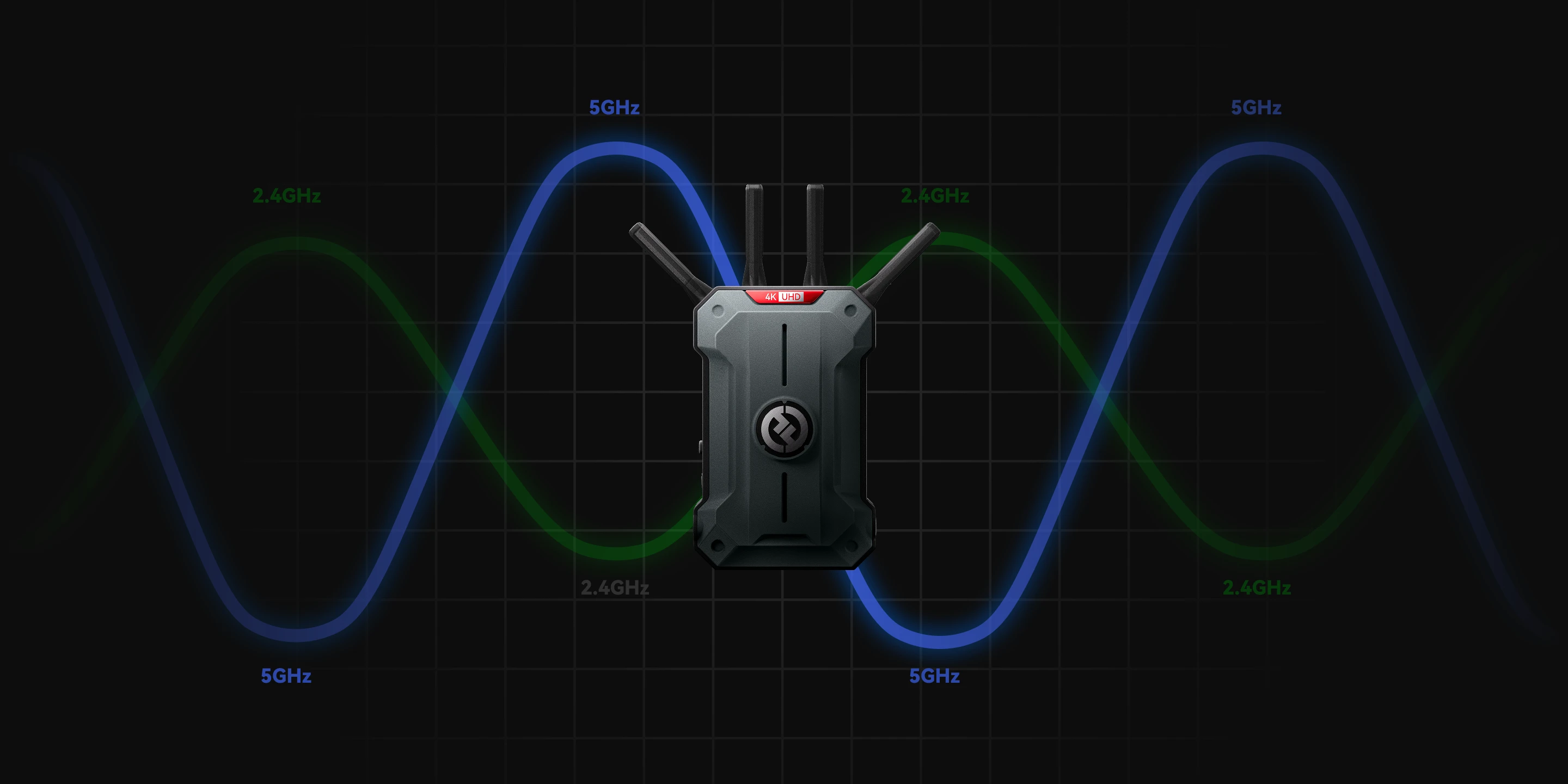 支持在 2.4 GHz/5 GHz 两类频段之间自动跳频,如遇信道干扰可自动切换到最佳信道,全程无需手动操作,现场监看丝滑稳定。产品设计已通过包括 DFS 在内的多项重要认证,为跨国、跨地区制作的团队提供便利。